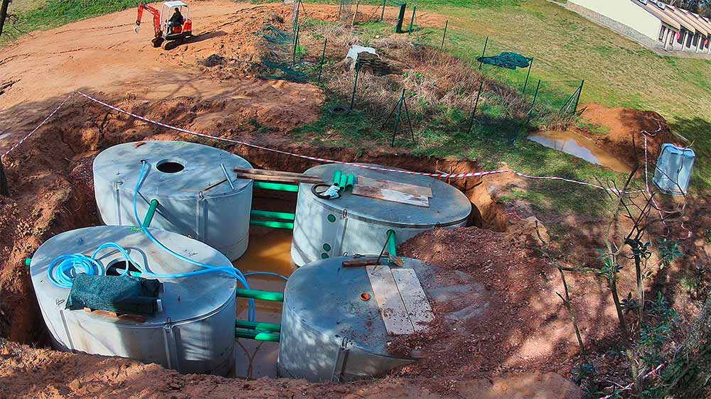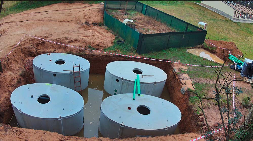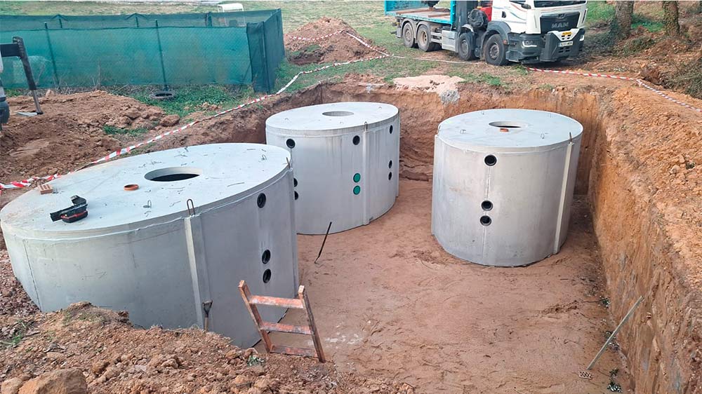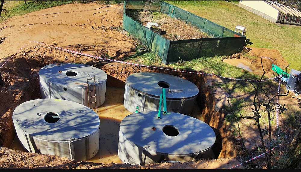 Kluczowym elementem projektu było wykonanie instalacji. System SBR został zainstalowany w czterech prefabrykowanych, eliptycznych zbiornikach betonowych, które są całkowicie zakopane pod ziemią. Zbiorniki te charakteryzują się wysokiej jakości konstrukcją:Płyta fundamentowa i ściany wykonane są jako pojedynczy odlew, bez złączy. Płyta nakrywająca jest trwale połączona ze zbiornikiem, a zintegrowany pierścień studzienki z PE chroni konstrukcję przed wnikaniem brudu i wód obcych zarówno podczas budowy, jak i eksploatacji.Dzięki solidnej konstrukcji zbiorniki oferują długą żywotność, doskonałą stabilność strukturalną i są idealnie dostosowane do użytku w miejscach wrażliwych środowiskowo.