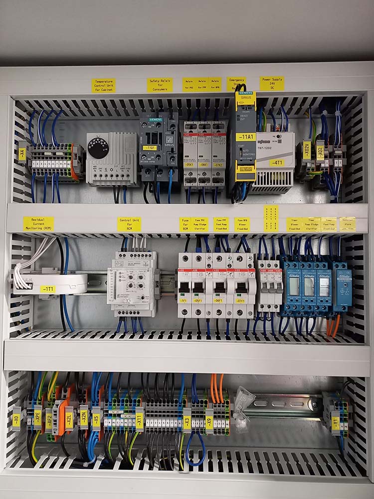 Mikroorganizmy oddzielają rozpuszczone substancje od czystej wody. Powstaje w ten sposób osad czynny, który częściowo powraca z kontenerowej oczyszczalni ścieków do zbiornika buforowego w celu dalszego oczyszczania ścieków. Aby całkowicie oddzielić czystą wodę od osadu, podłączony separator lamelowy osadza go grawitacyjnie. Część osadu czynnego pozostaje w reaktorze ze złożem stałym, aby zapewnić dalsze biologiczne oczyszczanie ścieków. Zebrany osad musi być regularnie usuwany przez bazę Departamentu Obrony USA.