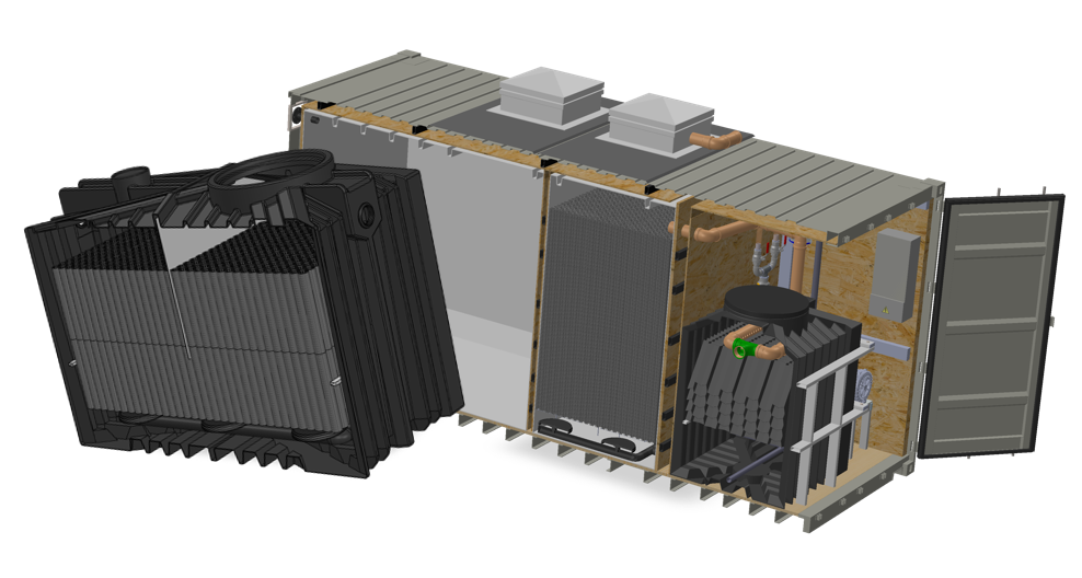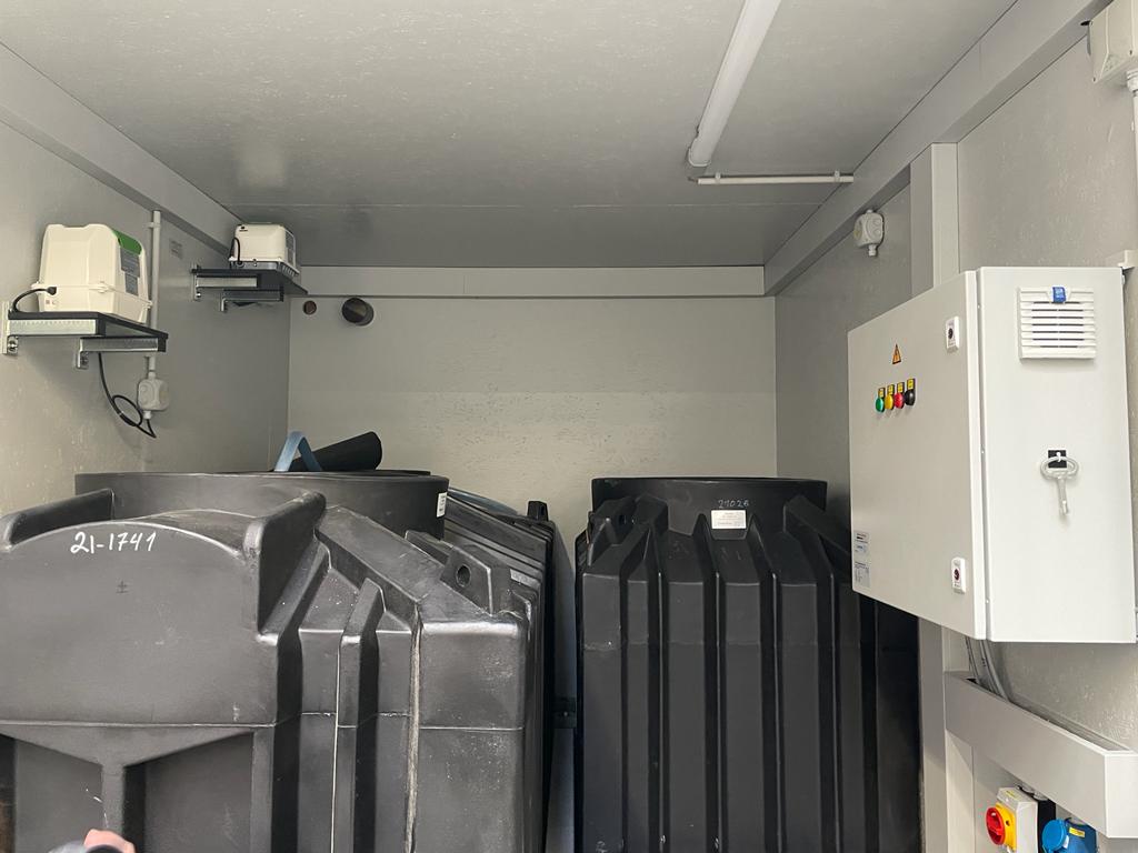 W ramach tego projektu PPU Umwelttechnik GmbH zaoferowała Departamentowi Obrony kompletne rozwiązanie zainstalowane w 20-stopowym kontenerze morskim HC ISO. Na początku ścieki wpływają do zbiornika zbiorczego, gdzie mogą osadzać się pierwsze zgrubne substancje stałe. Nie mogą one dostać się do reaktora biologicznego, ponieważ mogłyby w przeciwnym razie zakłócić biologię. Ponieważ ścieki wpływają bardzo nieregularnie do zbiornika zbiorczego, następnie trafiają do zbiornika buforowego, który wyrównuje szczyty dopływu. Ścieki następnie równomiernie wpływają do ClearFox® FBBR, który oczyszcza je biologicznie.