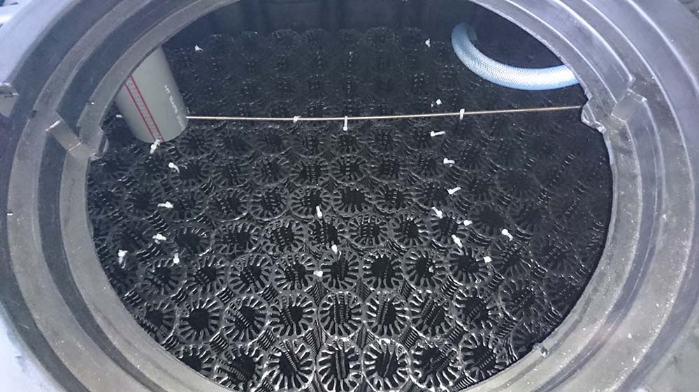 Jednak ścieki oczyszczone w instalacji flotacyjnej nie nadają się jeszcze do bezpośredniego odprowadzenia. W tym celu PPU zaproponowało moduł FBBR w zbiorniku. Jakość wody po oczyszczeniu biologicznym doskonale nadaje się do odprowadzenia do publicznego zbiornika wodnego. Ponieważ wszystkie pozostałe elementy są kompaktowe i modułowe, znajdują miejsce bezpośrednio przy procesie mycia.