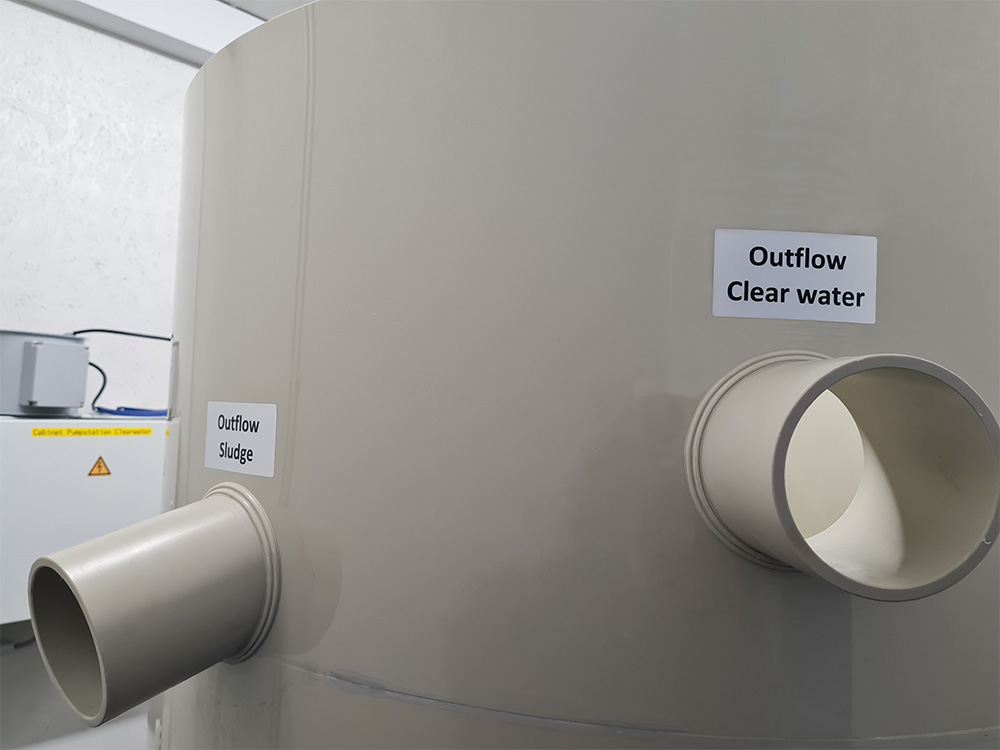 Zarówno ClearFox® DAF, jak i ClearFox® FBR wytwarzają osad, który klient musi regularnie usuwać. Aby wydłużyć te interwały, a tym samym zaoszczędzić koszty, zdecydował się również na prasę do osadu, która redukuje jego objętość do minimum. Zespół ClearFox® zintegrował cały proces oczyszczania ścieków z zakładem recyklingu tworzyw sztucznych, tym samym optymalnie spełniając życzenia klienta.
