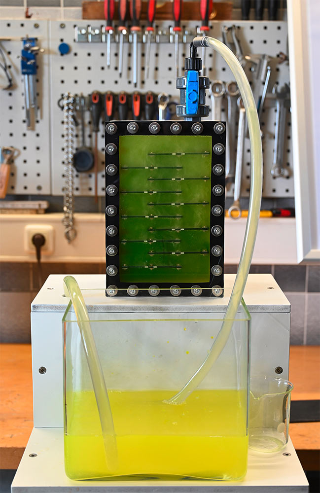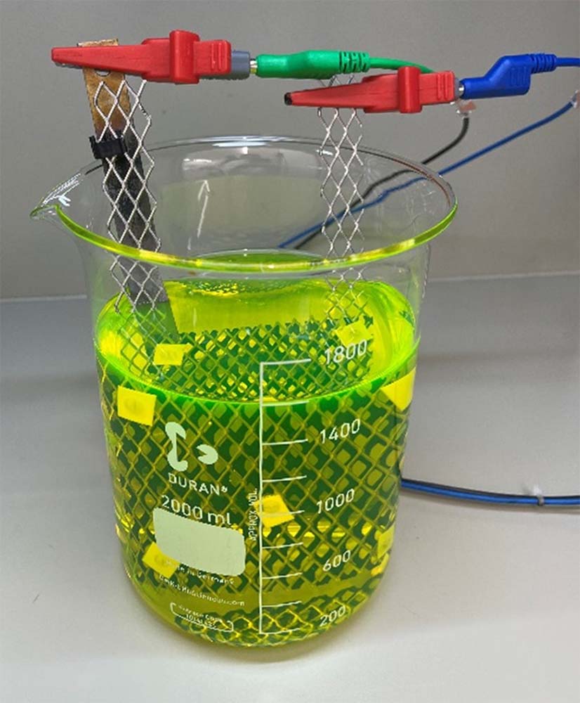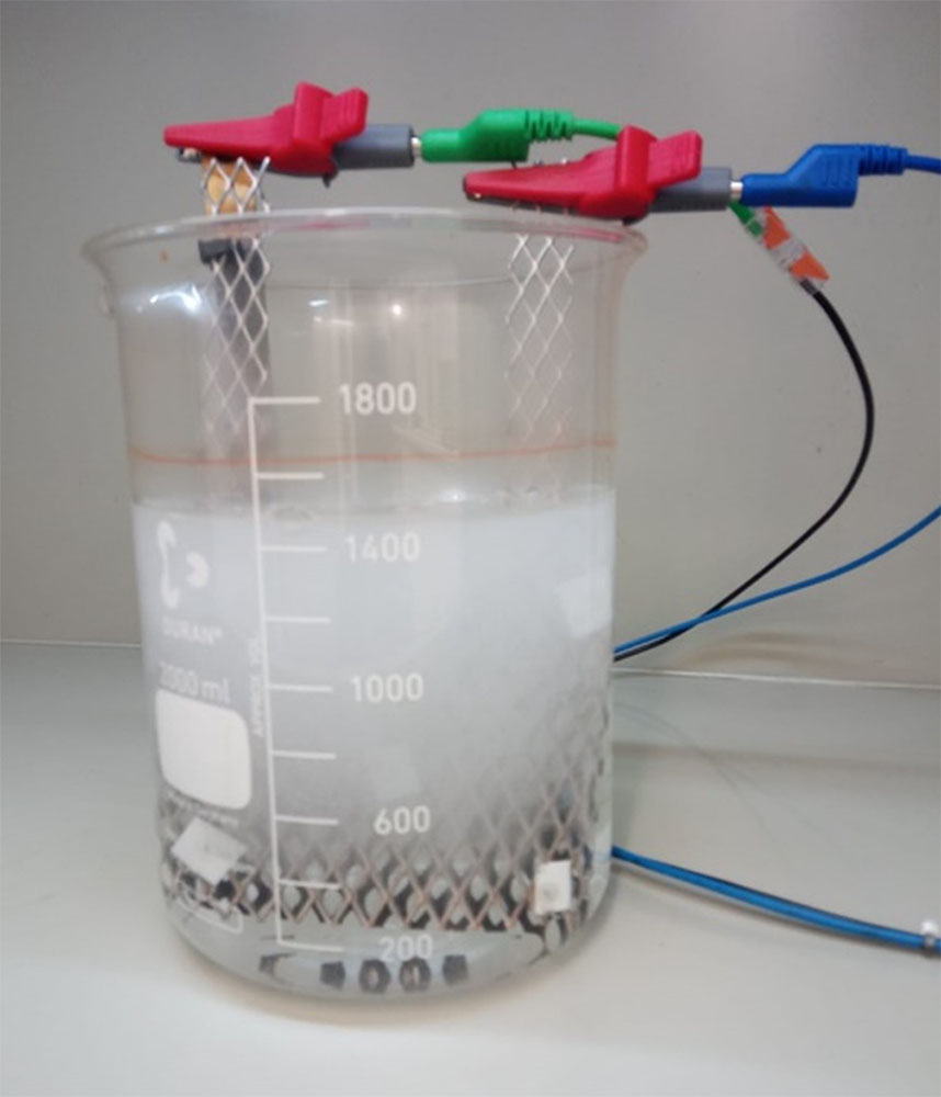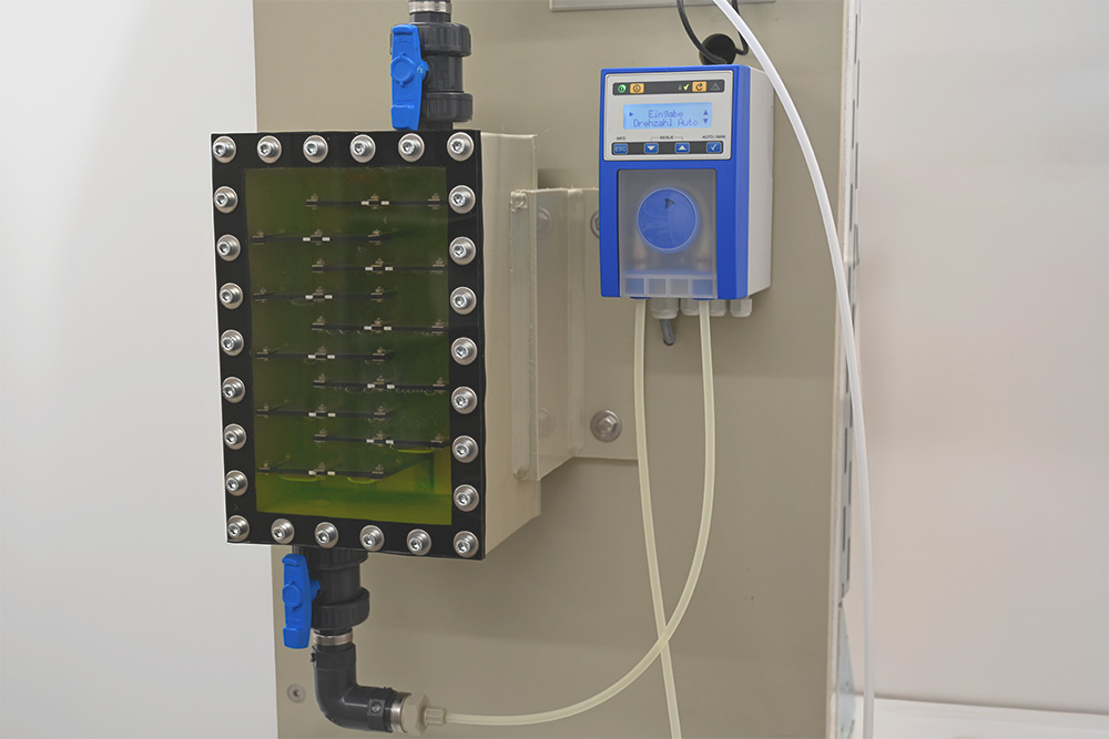 - Wstępnie oczyszczone ścieki są najpierw kierowane do oddzielnego modułu wyposażonego w elektrycznie przewodzące elektrody diamentowe.